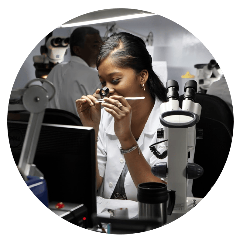 We inspect our diamonds at our network of Tiffany Gemological Laboratories in the U.S., Cambodia, and Vietnam. Grading oversight and quality validation occurs in New York, where grading and quality standards are set.