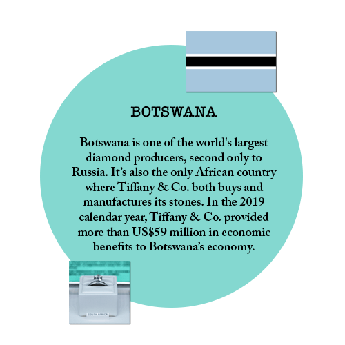 Tiffany owns cutting and polishing workshops in Botswana, Mauritius, Belgium, Vietnam and Cambodia.
