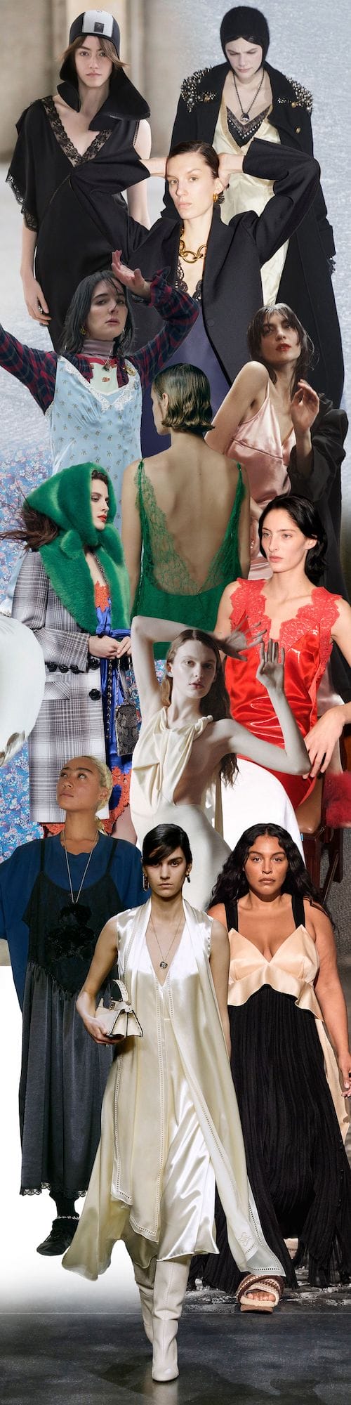For those who subscribe to the idea of a new Roaring ’20s on the horizon, you’ll be perfectly outfitted for the occasion. Flapper dresses abound in classically executed silks and lace from Khaite and Kwaidan Editions. More modern iterations can be found at Kim Jones’s new Fendi and Gabriela Hearst’s new Chloé. Layered under long coats at Miu Miu and Paco Rabanne, or with a grunge-tinged ’90s take at Coach, these nightie-inspired dresses are made for the nightlife.