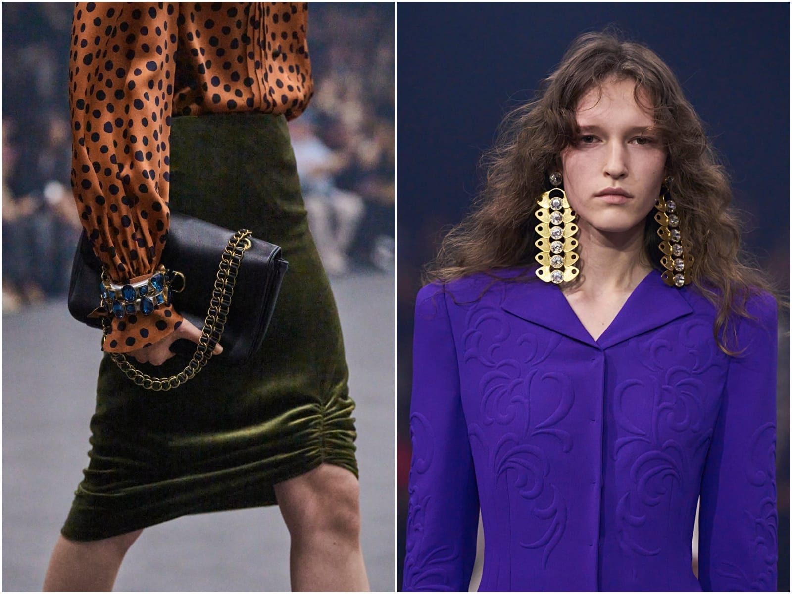 On the other hand, draping (that occasionally veers towards side sashes) create soft sculptures.