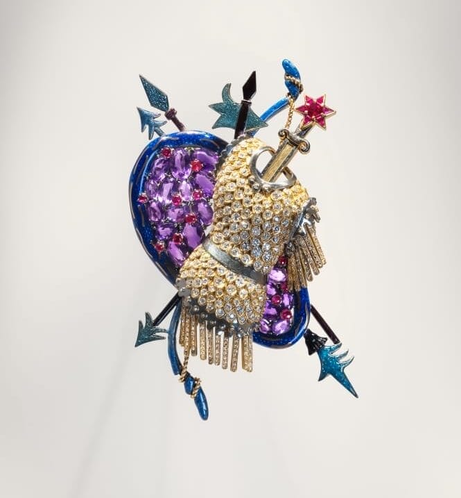 Trophée de Vaillance Clip Jean Schlumberger (1941) Gold, platinum, diamonds, rubies, amethysts, enamel Provenance: Diana Vreeland (1903–1989) The Tiffany Archives