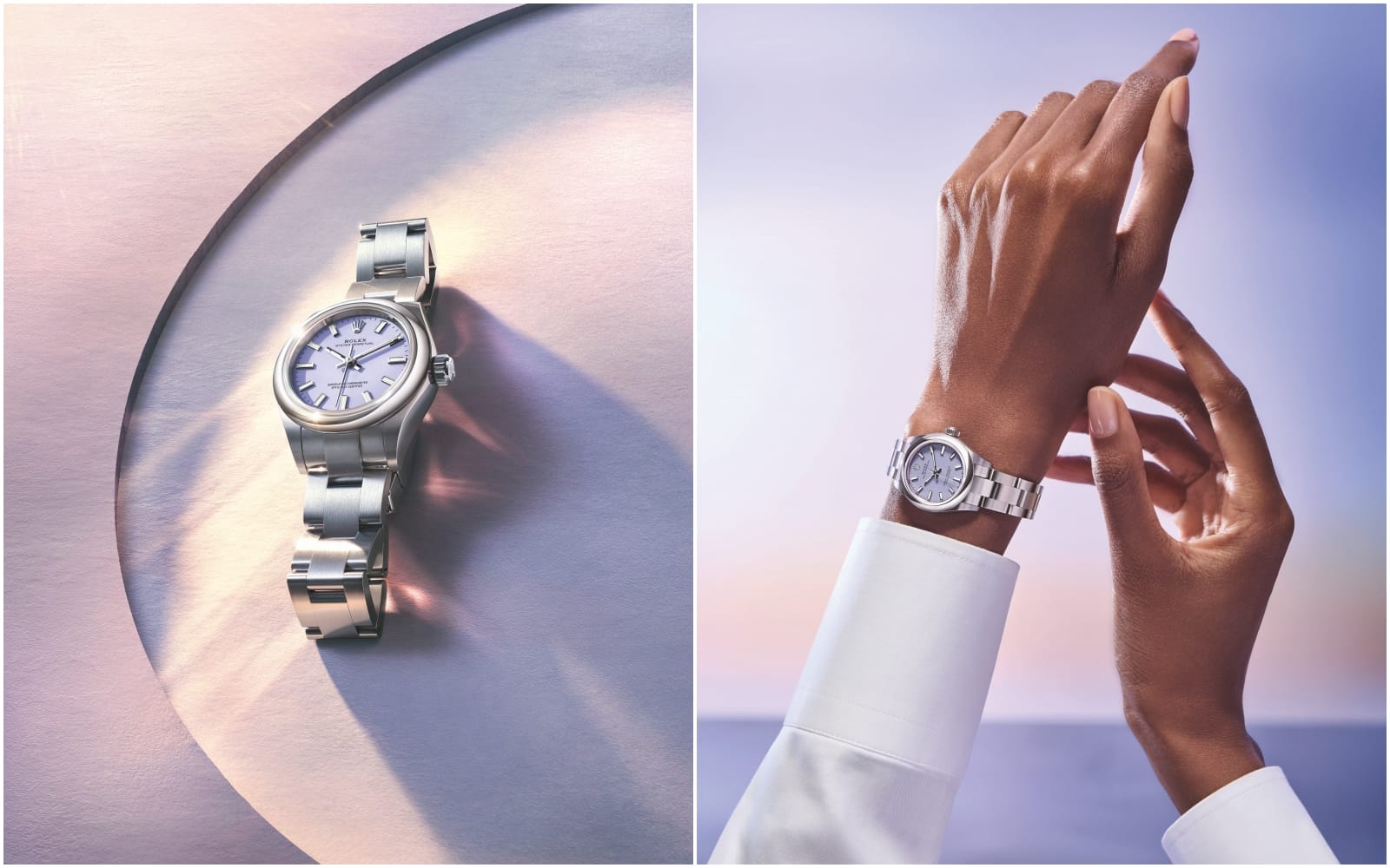 Rolex redefines luxury restraint with three new Oyster Perpetual dials in lavender, beige and pistachio—each with a smooth matt finish.