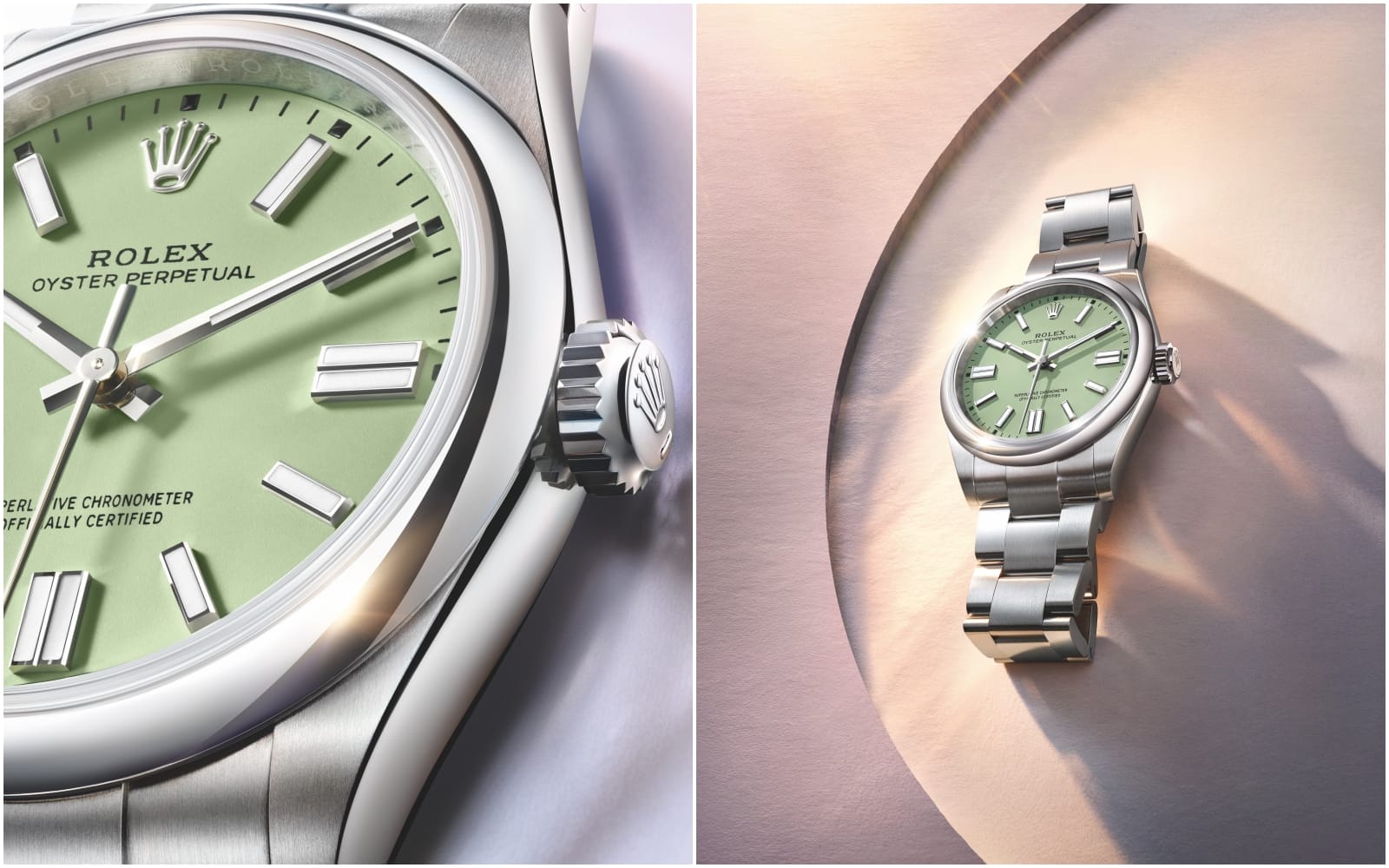 Rolex redefines luxury restraint with three new Oyster Perpetual dials in lavender, beige and pistachio—each with a smooth matt finish.