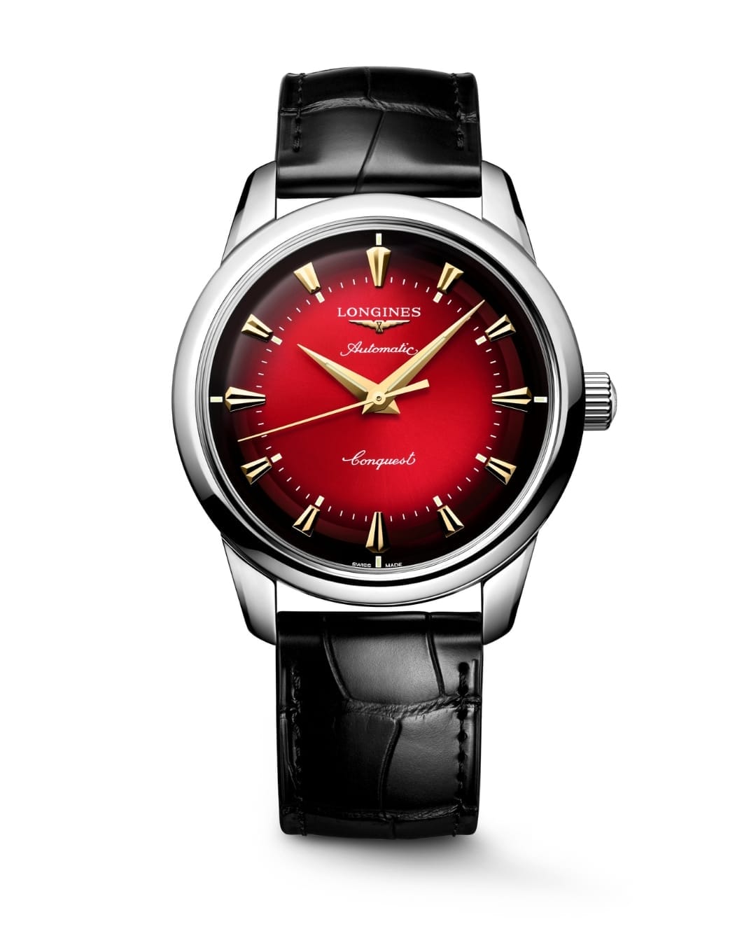 This Conquest Heritage has a 40 mm stainless steel case featuring a vibrant sunray gradient red domed dial. Its beating heart is powered by an exclusive Longines L888.5 mechanical self-winding movement with a 72-hour power reserve.