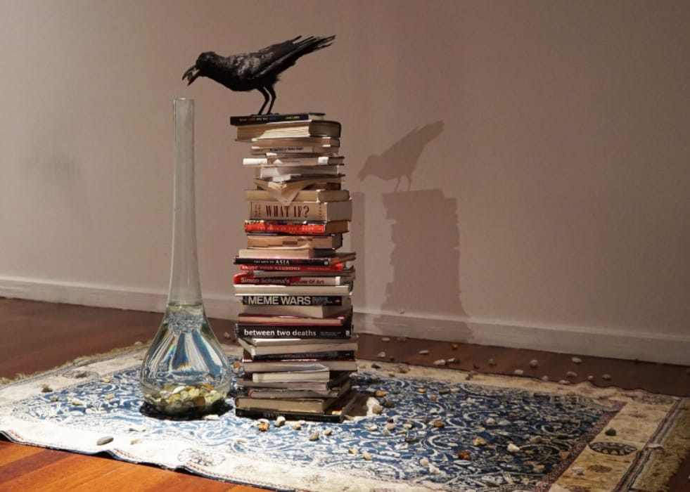 A taxidermy crow, present in This Is Certainly Not What We Thought It Was, 2014, Ahmad Fuad Osman