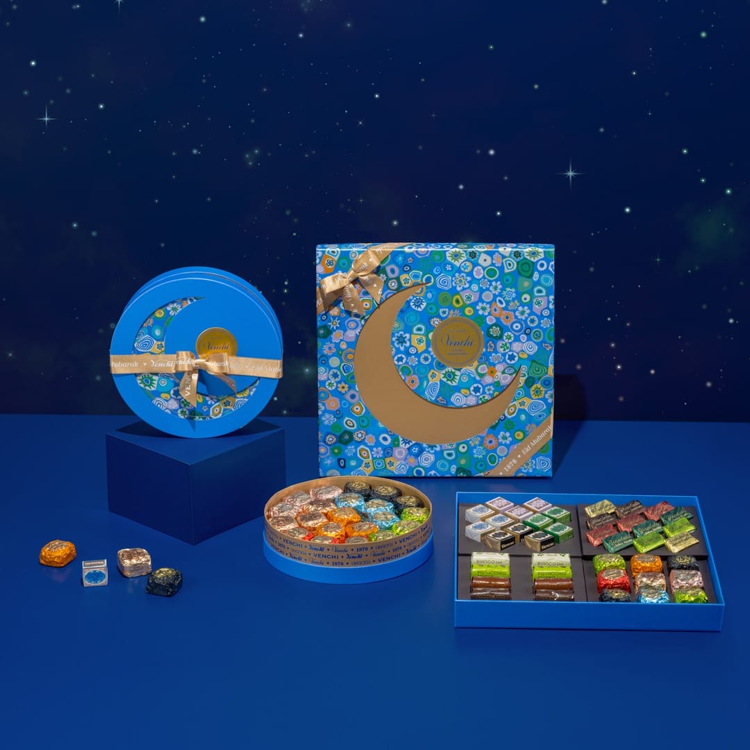 Taking inspiration from the beauty of Murano glass, the Ramadhan 2025 collection includes a decadent array of Venchi’s signature delights. Adorned with delicate gold accents and a luminous finish, you’ll find beautiful motifs of the crescent moon and lantern throughout the collection. No matter the size and chocolate assortments, you’ll have a grand time picking out the perfect gifts for your loved ones.