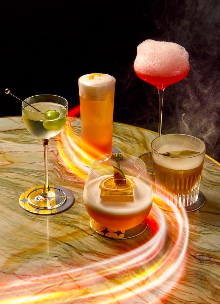 Highlights include the Marina Circuit Martini, an elegant vodka-based concoction infused with Shine Muscat and citrus for a touch of refined sweetness; Don’t Hold Your Blanco, a bold tequila creation laced with spice; and Pit Stop Scarlet, a gin-forward option balancing herbal and tart fruit notes. For something indulgent, Hammer Time reinvents the Old Fashioned with wagyu tallow and applewood smoke, while Corsa Sour puts a Japanese spin on the whiskey sour with Suntory Old and a zesty citrus lift.
