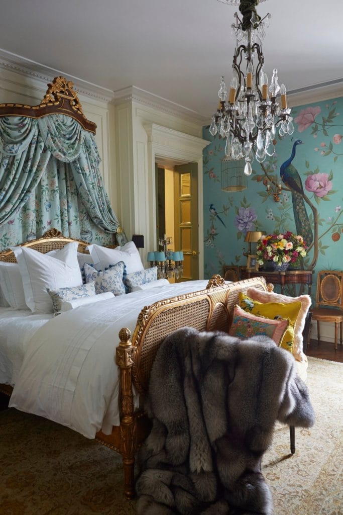 Hand-painted De Gournay-inspired wallpaper in the master bedroom