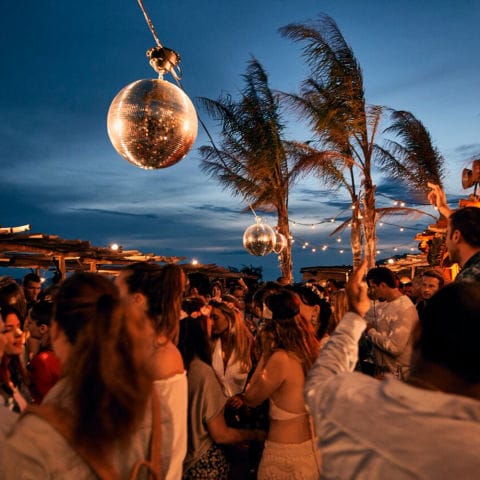 The only place to be in Mykonos on a Sunday night is, without question, Scorpios, which stands proudly on its own peninsular between the bays of Kavos and Paraga. This utopian restaurant/beach club boasts a bohemian chic backdrop for the weekly residency from Greek-Italian-Aussie DJ and producer Kaz James, whose dazzling 3-hour sets became the hottest ticket on the island, attracting more than 3500 people each week. Here, glittering crowds gather under the moonlight and disco balls, dancing the night away to the most stylish house music you’ll hear all summer. By day, you can also lounge on beach beds, watch spectacular sunsets and eat mind-blowingly good food – think tomahawk steak with courgettes and mint – served by impossibly charming waiters.