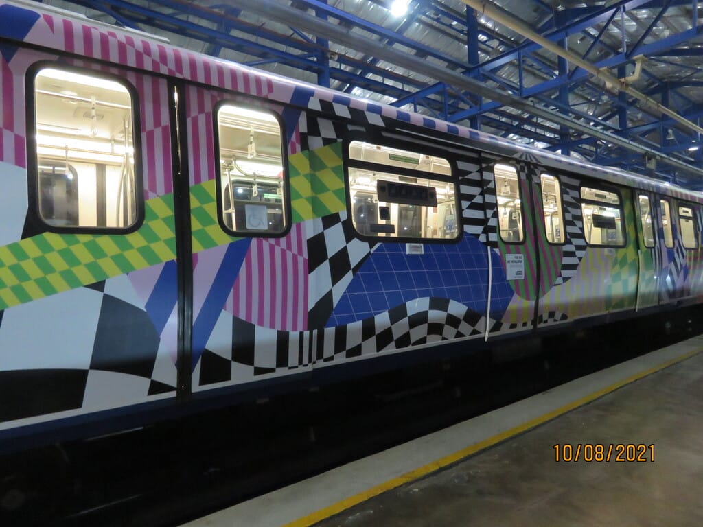 Nawwar Shukriah Ali’s use of colour, mirrors and iridescence feels like a nod to her alias Bono Stellar. By working in areas of convergence between different materials, forms and palettes she creates artistic experiences that coalesce varying perspectives. The perspectives she speaks of begin from research into art history and her own observations and analysis, to form a base from which she is able to speak to broader social concerns. Nawwar’s latest public art project, an installation at the Masjid Jamek LRT station and wrapping of a LRT train, exemplifies this notion.