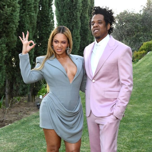 - The superstar sported a green jacket and pants while attending the game with her husband, Jay-Z, and daughter, Blue Ivy Carter.