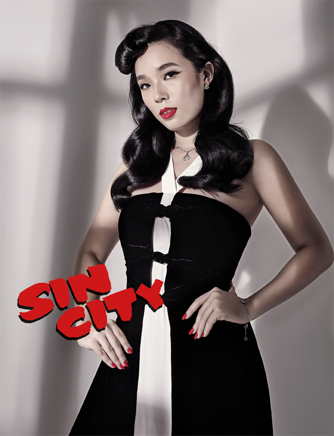 “I started collecting vintage clothing when I was young, but back then I was a little more experimental,” confesses Lee Ming, whose sartorial choices run the gamut of ’50s pin-up stars to ’60s icons. “After a while, I realised that classic silhouettes work best for me, and these days I prefer pencil skirts over miniskirts.” Needless to say, Lee Ming’s own confidence has grown over the years, as evident in her convincing portrayal here of Eva Green in Sin City: A Dame to Kill For’s Ava Lord. “Playing this character made me feel really strong, sexy, and empowered—elements that I believe should be every woman’s secret weapon.”