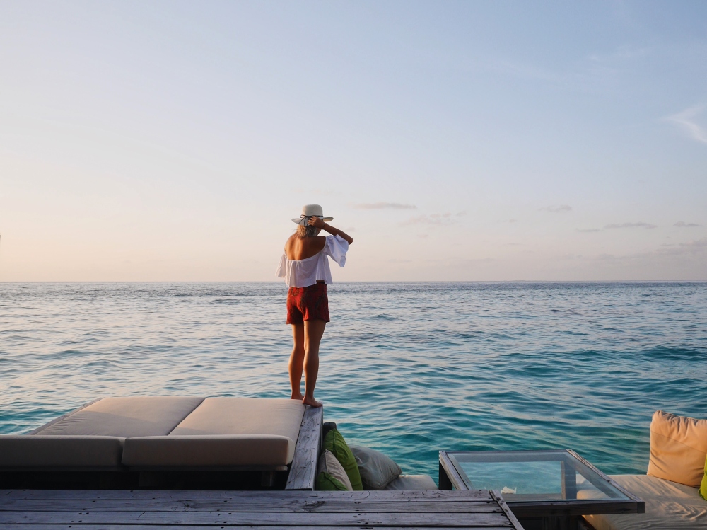 My first morning started with a stroke of luck—a sighting of an eagle ray on my way to breakfast at the over-water Longitude restaurant. The first meal of the day is a serious affair here, that even long-term vegans can proclaim that they’re spoilt for choice. After a hearty meal of paleo granola sloshed with almond milk and Maldivian tuna omelette, I am ready to take advantage of the immediate access to the electric blue waters. My snorkelling excursion on the house reef, part of the brand’s eco code of conduct, is well-rewarded, as I swim alongside not one, but two hawksbill turtles.